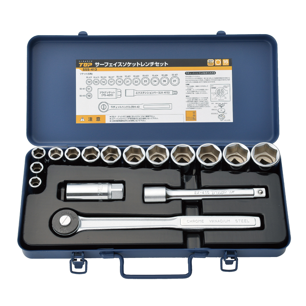 TOP Kogyo SSS-413 Surface Socket Wrench Set 16 Pieces (10, 11, 12, 13, 14, 17, 19, 21, 22, 23, 24, 26, 27mm) | EMIN.CO.ID