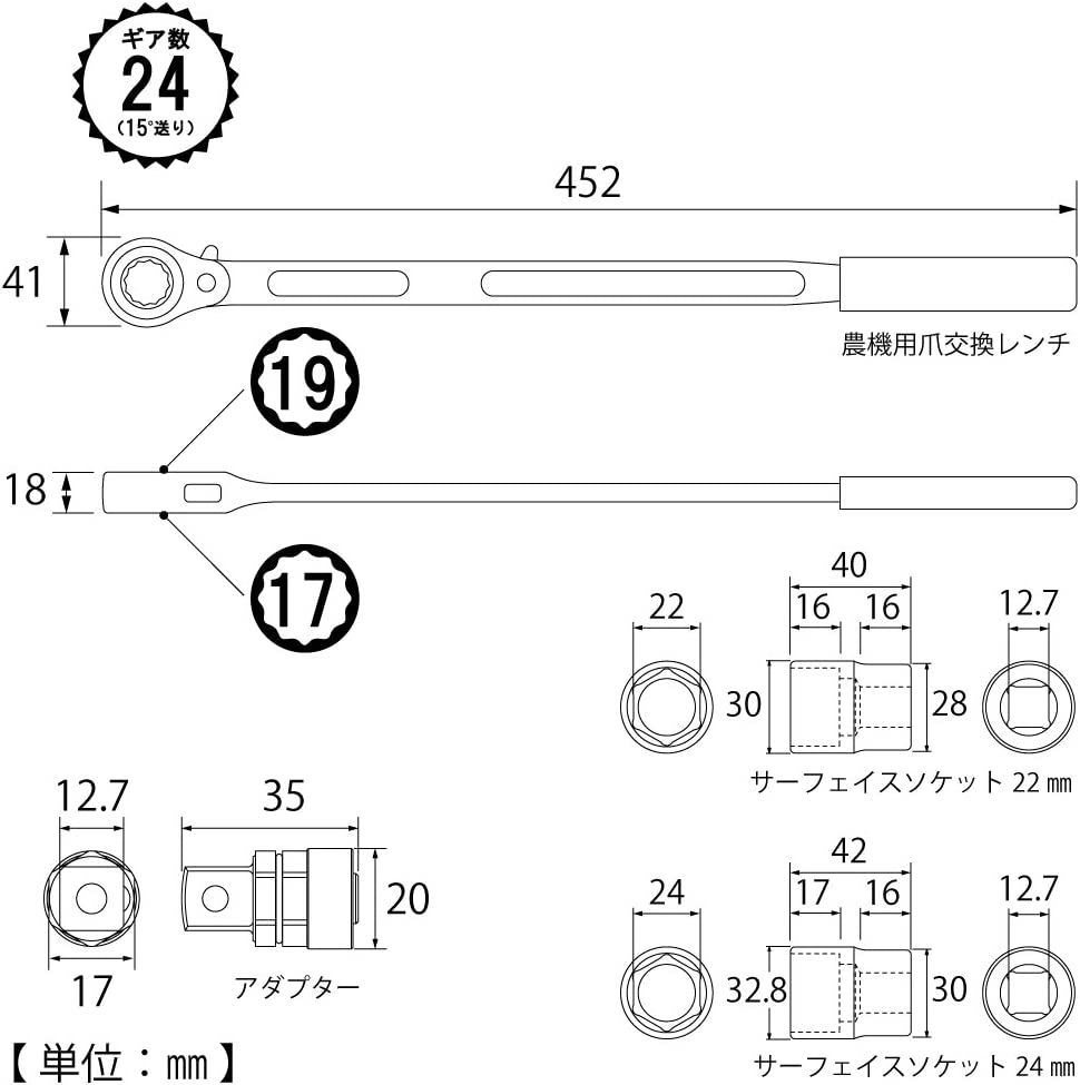 TOP Kogyo CKR-17X19S Replacement Wrench Set for Agriculture | EMIN.CO.ID