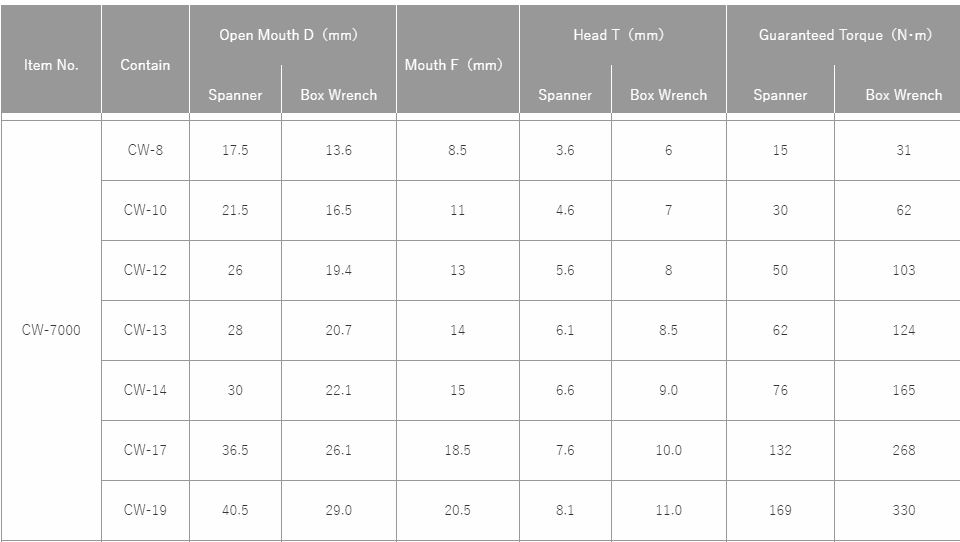 TOP Kogyo CW-7000 Combination Wrench Set (7 pcs/set) | EMIN.CO.ID