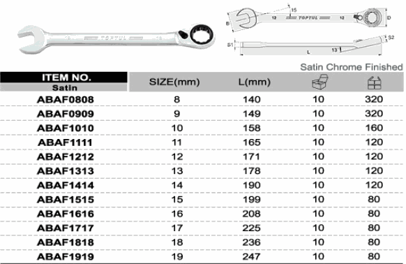 TOPTUL ABAF1616 Pro-Series Reversible Ratchet Combination Wrench (16 mm) | EMIN.CO.ID