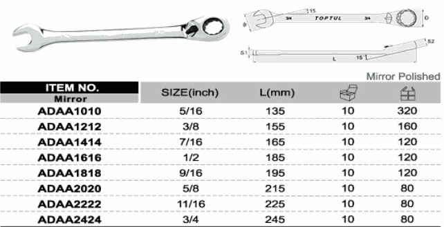 TOPTUL ADAA1818 Reversible Ratchet Combination Wrench (9/16 inch) | EMIN.CO.ID