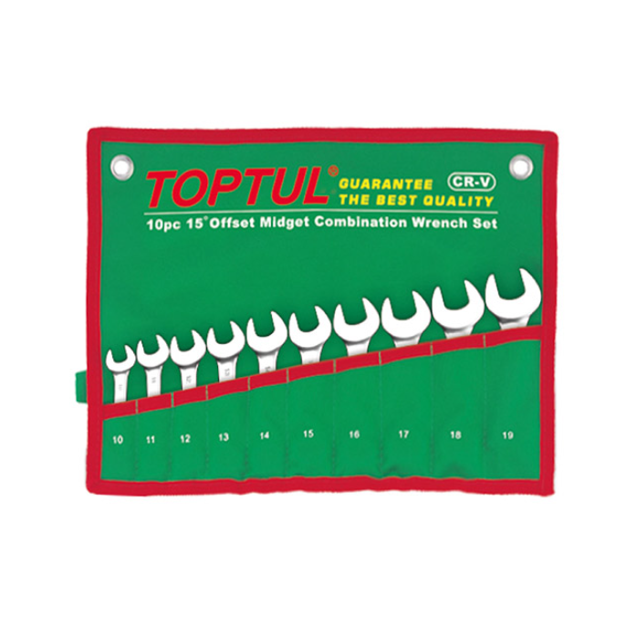 TOPTUL GAAA1002 15° Offset Midget Combination Wrench Set POUCH BAG - GREEN (10PCS, 10-19mm) | EMIN.CO.ID