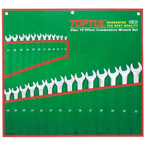 TOPTUL GAAA260415° Offset Standard Combination Wrench Set - POUCH BAG - GREEN (6-32mm) | EMIN.CO.ID