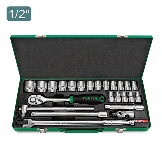 TOPTUL GCAD2404 DR. Socket Set - Satin (1/2", 24 PCS) | EMIN.CO.ID