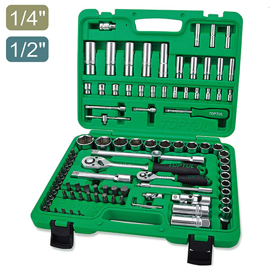 TOPTUL GCAI094R1 1/4" & 1/2" DR. Flank Socket Set (94 pcs) | EMIN.CO.ID
