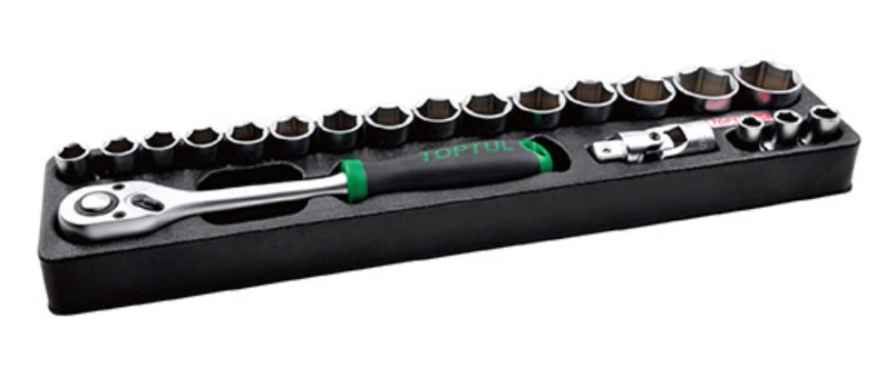 TOPTUL GM-2023 20PCS 1/2" DR. Flank Socket Set (12PT) (20 pcs, 1/2'', 12PT) | EMIN.CO.ID