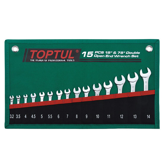 TOPTUL GRAJ1501 15°&75° Double Open End Wrench Set (15 pcs) | EMIN.CO.ID
