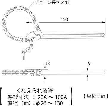 TOP Kogyo TW-150N Chain Wrench (20~100A) | EMIN.CO.ID