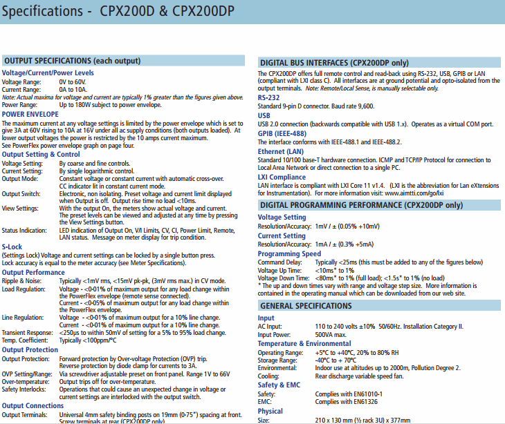 Ripple & Noise: Typically <1mv rms="" 15mv="" pk-pk="" 3mv="" rms="" max="" in="" cv="" mode="" br=""> Load Regulation: Voltage - <0·01% of maximum output for any load change within