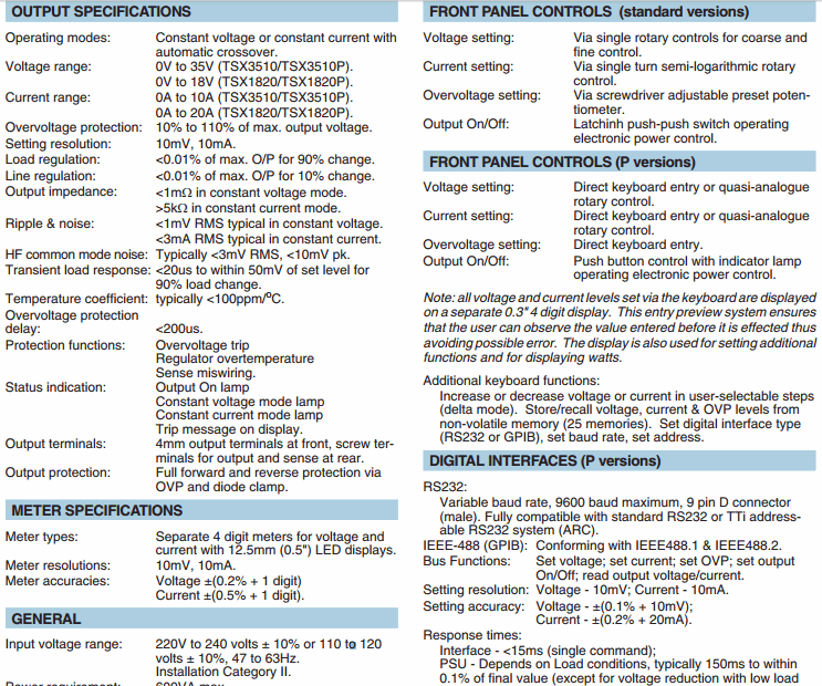 TTI TSX1820P Bench DC Power Supply (0〜18V、0〜20A、360W、RS232 / GPIB) | EMIN.CO.ID