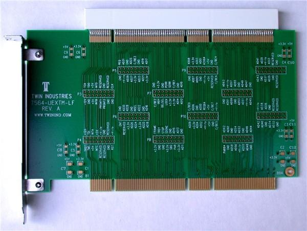 Twin Industries 7564-UEXTM-LF Extender Cards 64 Bit four layer PCI extender card with internal VCC and ground planes. Clearly marked signals for easy probing. Keyed for universal voltage. (5 & 3.3 Volt) Board Size: 4.2"x6.9" (LEAD FREE VERSION)