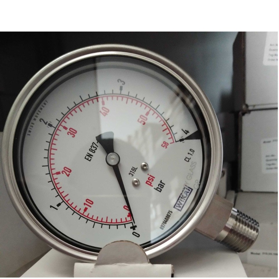 WIKA 232.50.100 (4 Bar(Psi),dial 100,chân đứng) Pressure Gauges | EMIN.CO.ID
