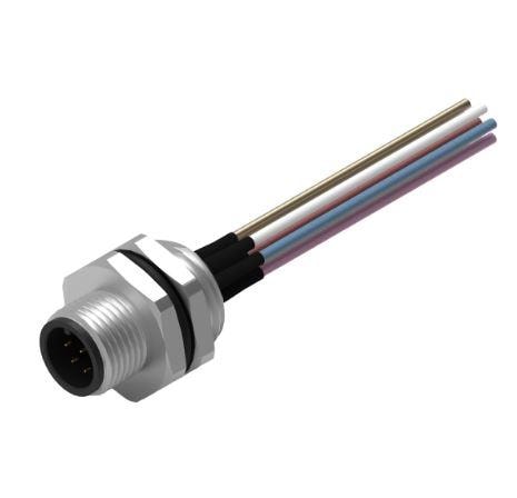 Wurth Elektronik 643352100608 Plugs WRCIRC M12 Screw Coding A Panel + Wires Panel + Wires Metal with Rear Panel Nut PG9 Male connector, polarity 8