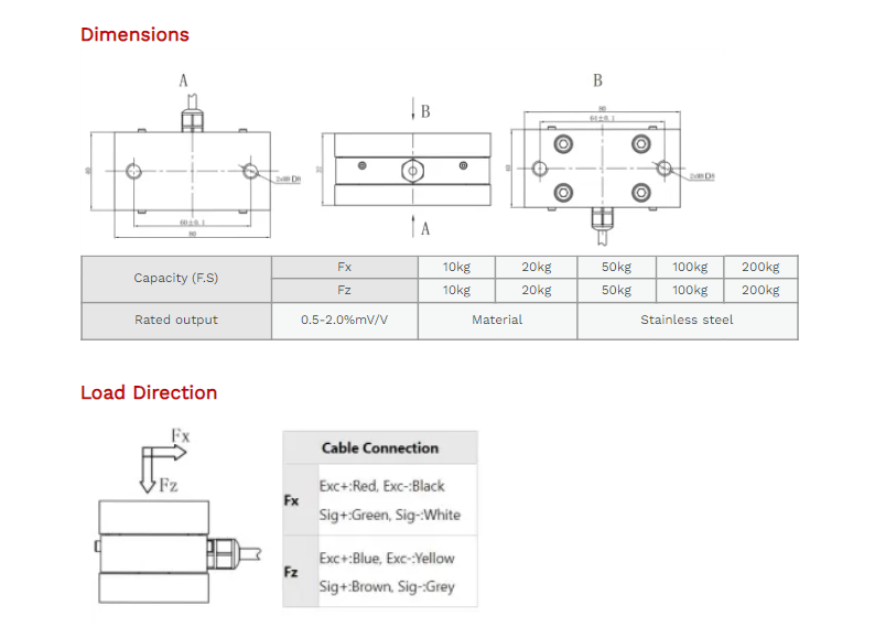 XJCSENSOR X-2A-L80-W40-H37 2 Axis Load Cell (10kg~200kg) | EMIN.CO.ID