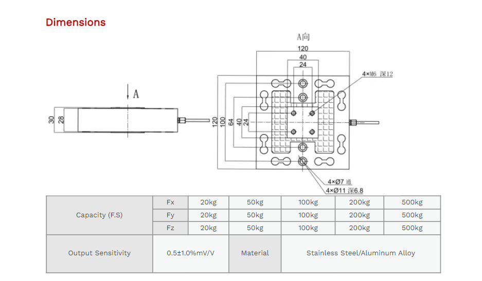 XJCSENSOR X-3A-F120 3 Axis Load Cell (20 Kg) | EMIN.CO.ID