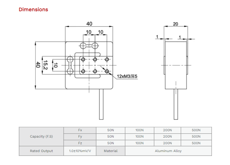 XJCSENSOR X-3A-F40 3 Axis Load Cell (50N~500N) | EMIN.CO.ID