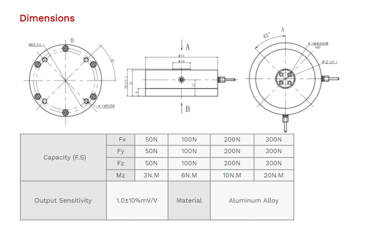 XJCSENSOR X-4A-D74-H28 4 Axis Force/Torque Sensor (50N) | EMIN.CO.ID