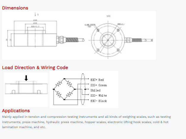 Cable Connection: Ex+: Red; Ex-: Black; Sig+: Green; Sig-: White
