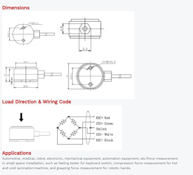 XJCSENSOR X-Z15-H9-2M Compression Load Cell (0-20 kg) | EMIN.CO.ID