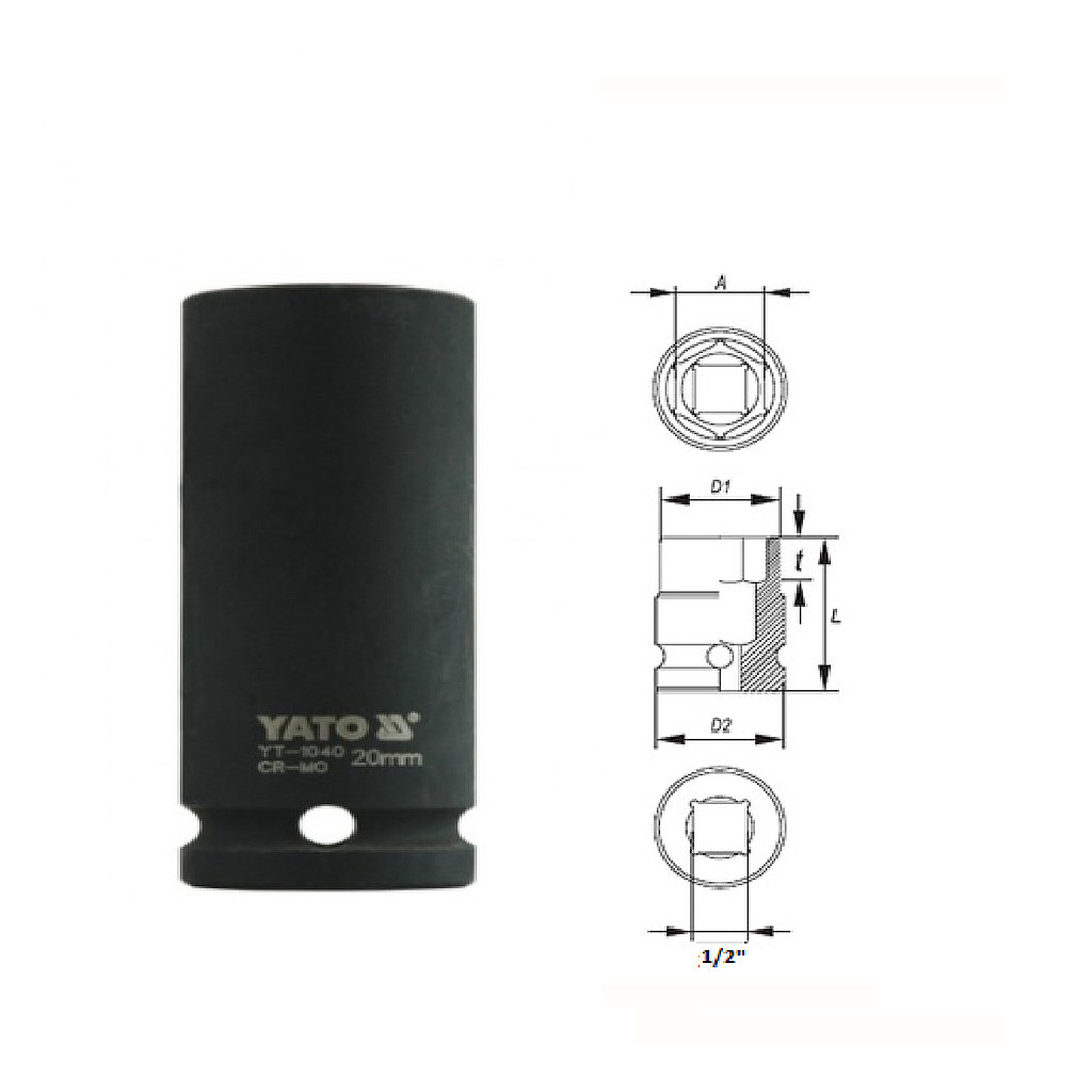 Yato YT-1040 Hexagonal deep impact socket 1/2" (20mm) | EMIN.CO.ID