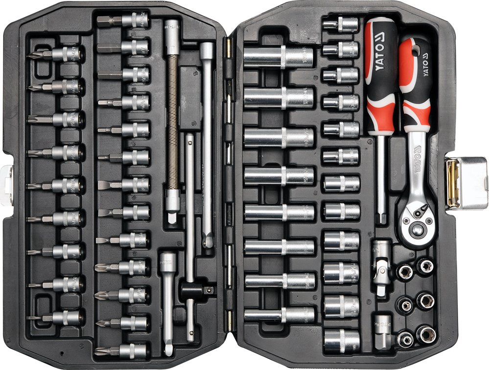 Socket Set 1/4" 56 pieces all made from the highest quality vanadium steel. The ratchets have 72 teeth and are made to perform heavy duty jobs. The case is made from a very durable material for safe transportation. Superior quality ratchet mechanism with soft grip handle for easier manoeuvring. The sockets are equipped with an as-drive system, which increases its performance by 25%.