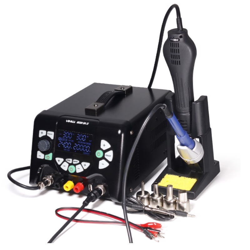 【3 in 1 design】it combines together in one common unit: soldering station, rework station and DC stabilized switching power supply(minimum current display unit is 0.1mA), these three functions can be used independently or simultaneously.